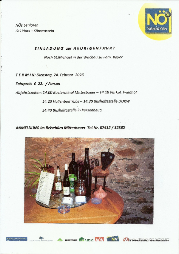 Nös starteten gestern zur ersten Ausfahrt 2025. Ziel war unser Heuriger in der Wachau. 52 Senioren genossen einen [...]